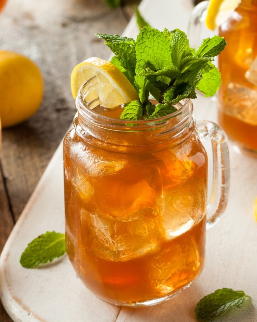 Begin by brewing your tea. While it’s still hot, combine with maple syrup. Allow mixture to cool and then refrigerate until completely chilled. Just prior to serving, stir in the lemon juice and top cups with ice. Garnish with lemon slice a sprig of fresh mint, optional. Serves: 4
